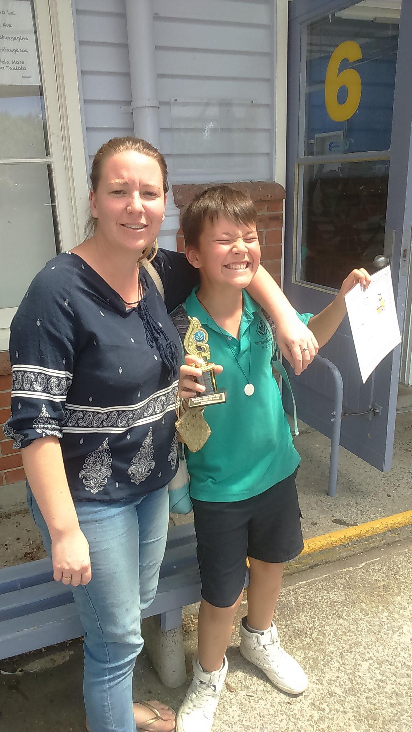 Tyler Hector CLEWS, 2017, age 10, Johanna with Tyler at prize giving day